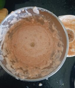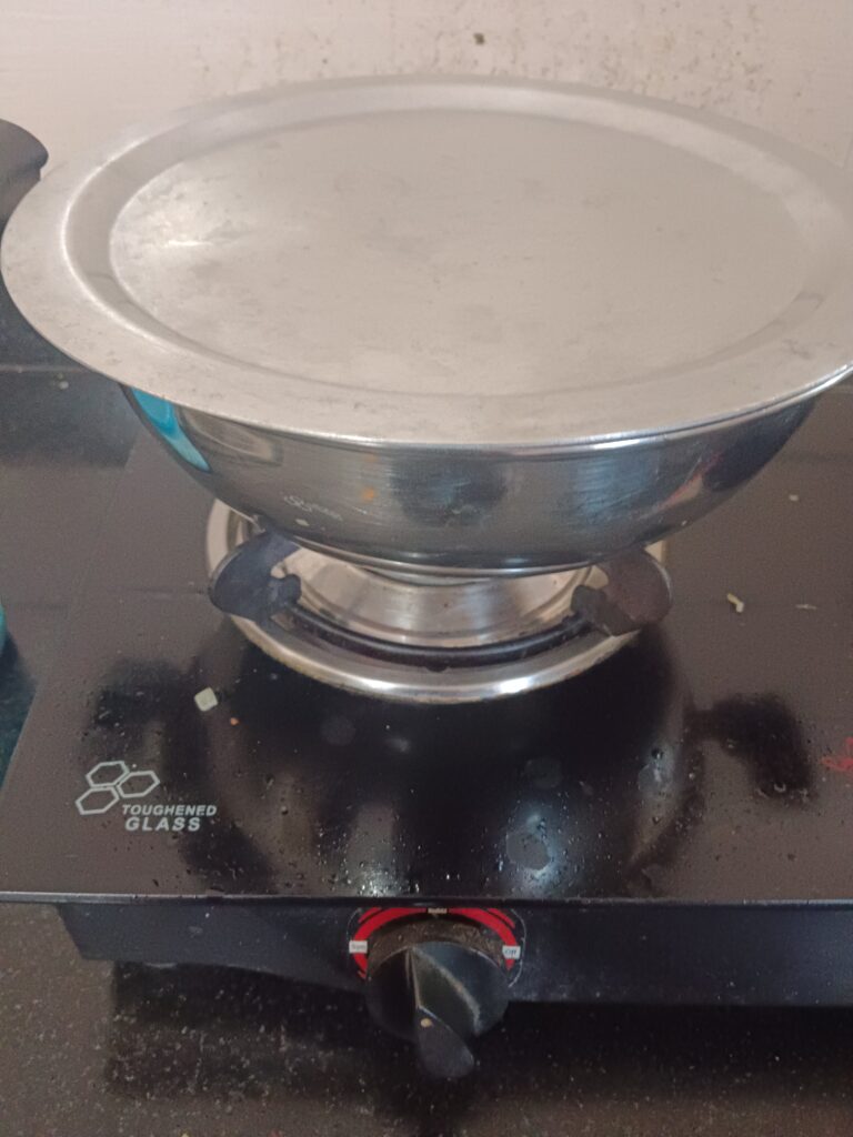 4. Covered the pan and keep it for 3 to 4 mins. Now transfer the paste from the jar. Be careful, it will begin to splash, so better to keep 1/4 cup of water ready and pour it immediately. Mix it well and keep it in simmer for 2 mins.