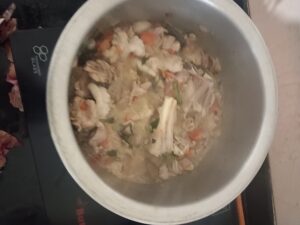 7. Cover and cook on a medium heat for 1 hour. Keep stirring every 15 to 20 mins and add more hot water as required.