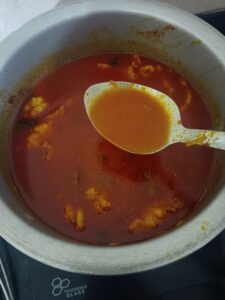 8. Mix well , if your curry is too thick .Turn off  the flame once and rest for at least 15 to 20    mins before serving. The gravy will thicken a bit after cooling so turn off accordingly. Once taste test and add more salt.
