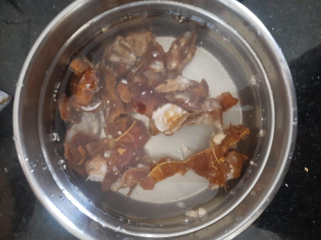 5. Filter the tamarind water and add the 1 cup of water into it.