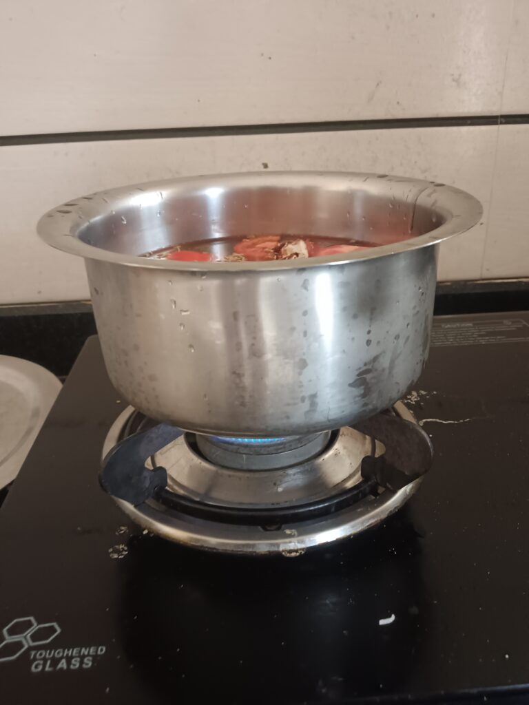 Now turn ON the stove and put pot on stove, keep boiling the tomatoes till it becomes smooth.