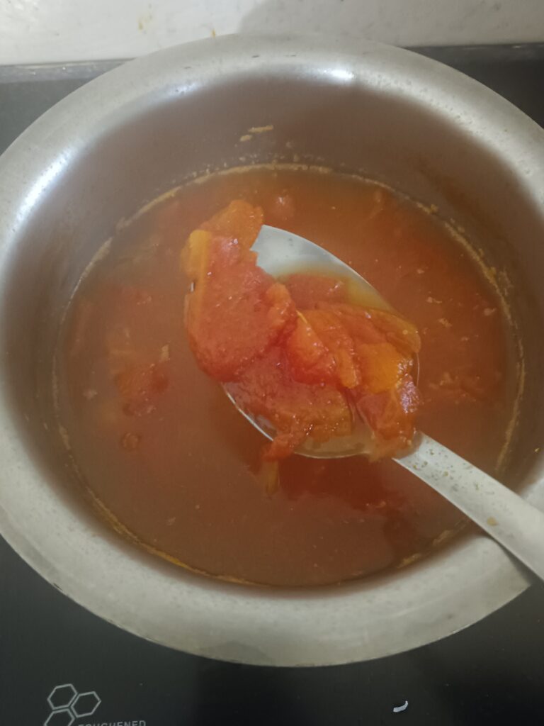 2. Now take a pot, turn the tomatoes mushy and pour some water into it , filter the rasam